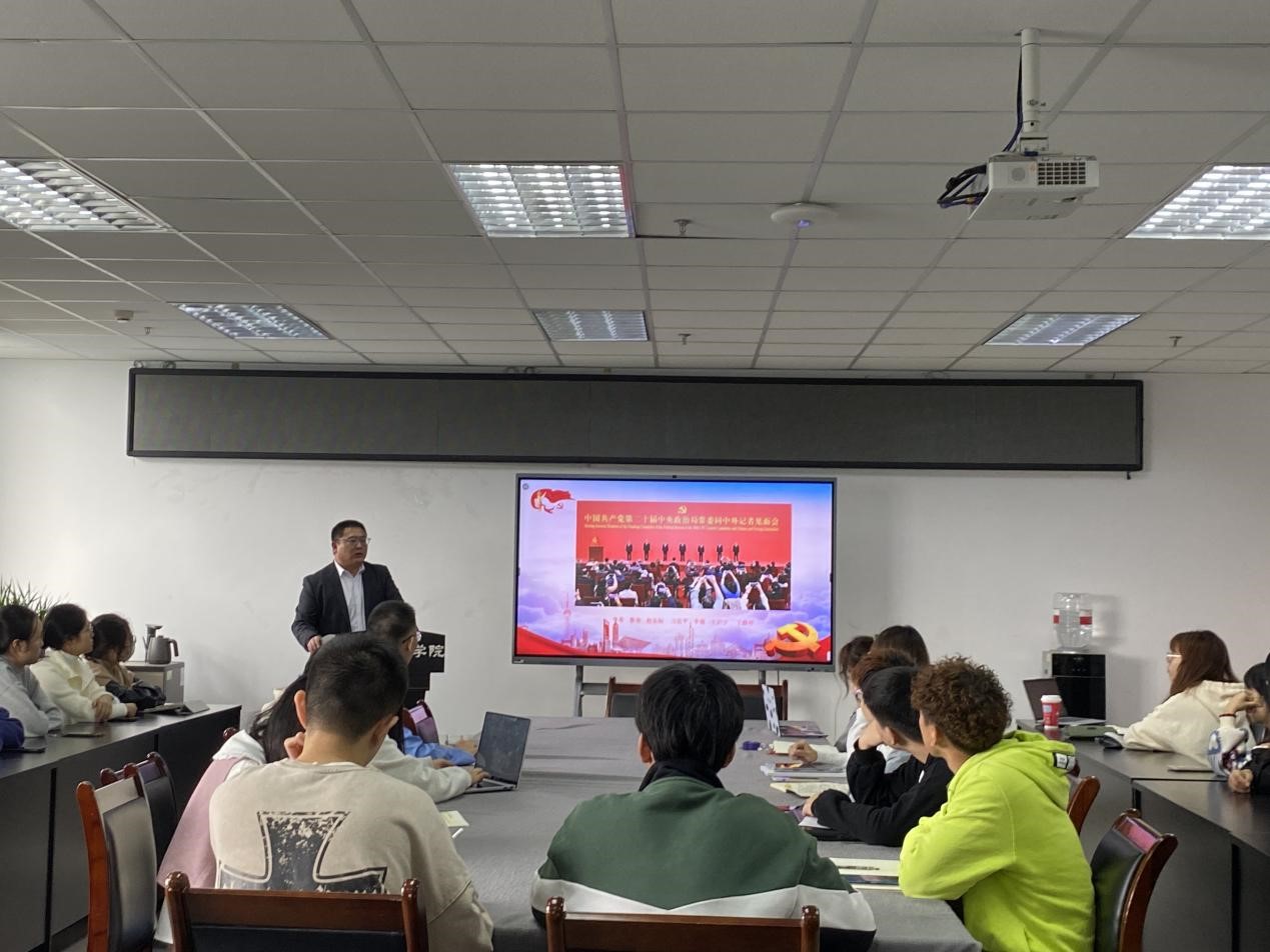韩庆龙传达学习习近平总书记在中国共产党第二十次全国代表大会上的报告以及党的二十大精神的相关文件。韩庆龙指出,认真学习宣传贯彻党的二十大精神,是当前和今后一个时期首要政治任务,党团学组织所有主席、主干、学院第五期青马班学员作为学生代表中先进积极分子更应该带头学,抢先学、深入学,各学生支部、班级团组织要迅速行动起来,在全院掀起学习宣传贯彻党的二十大精神的热潮。