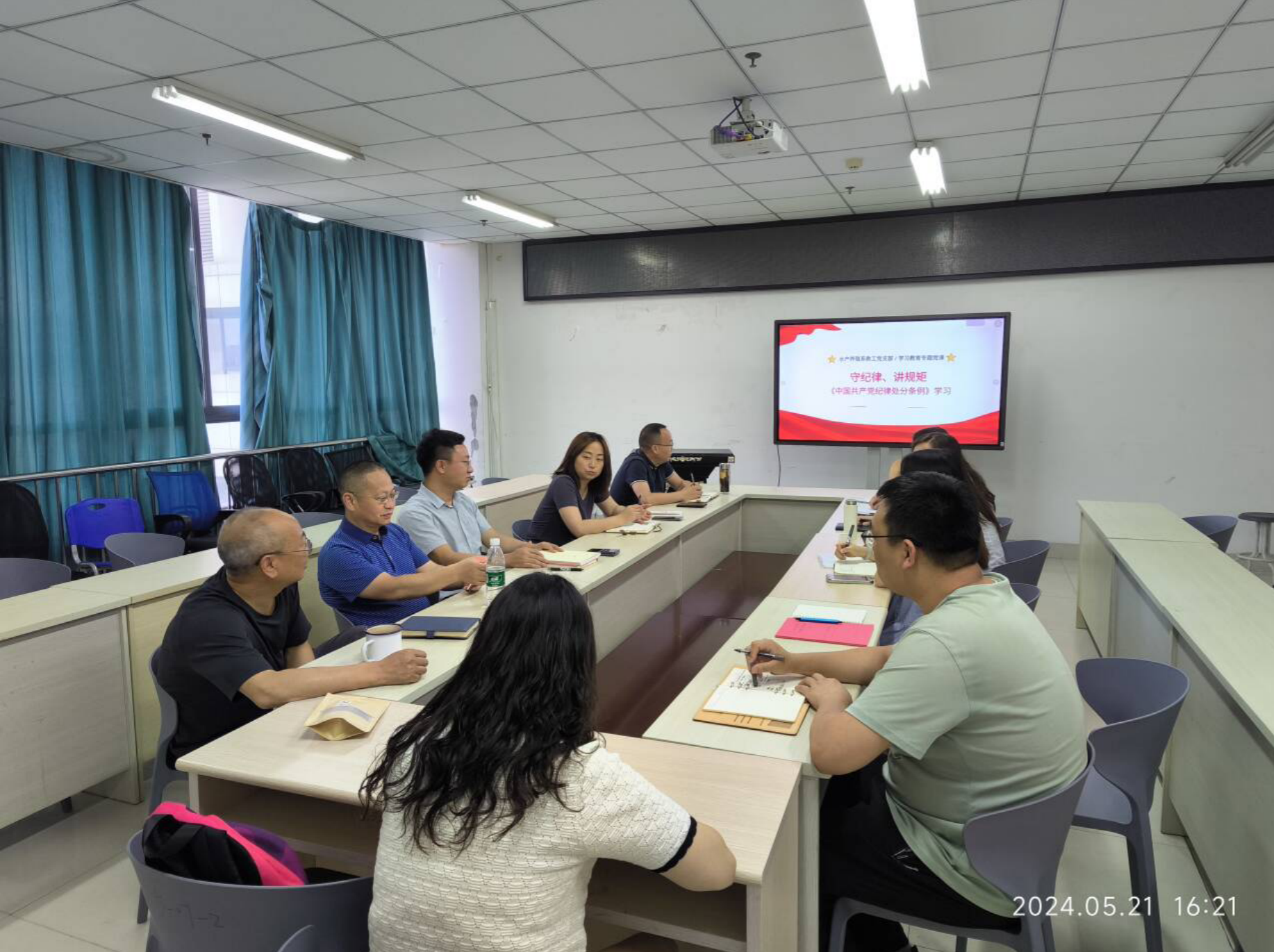 支部书记陈德芳带领支部成员重温《中国共产党章程》并领学新修订的《中国共产党纪律处分条例》,与会人员结合典型案例情况,对违反政治纪律、组织纪律、廉洁纪律、群众纪律、工作纪律和生活纪律的行为进行学习,以案促学、以案示警,全体党员同志在学习反思中认识到纪律的严肃性和执行纪律的必要性,会上,党员们纷纷发表了学习体会和感悟。