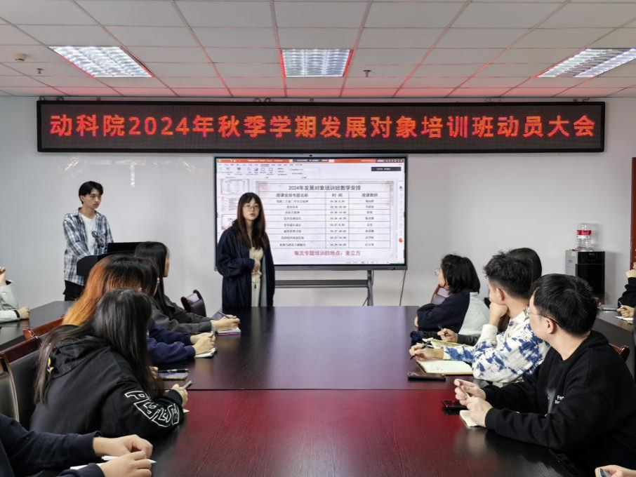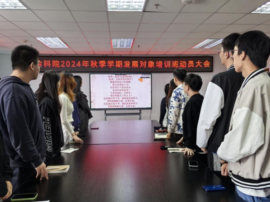 为进一步提高发展对象的思想政治觉悟和党性修养,教育引导广大发展对象端正入党动机、严守政治纪律、坚定入党信心,扎实开展发展对象培训工作,10月25日,新葡的京集团8814于7-1011会议室召开2024年秋季学期发展对象培训班动员大会,34名发展对象参加会议。本次动员大会由党委办公室副主任,团委副书记舒正悦老师主持。