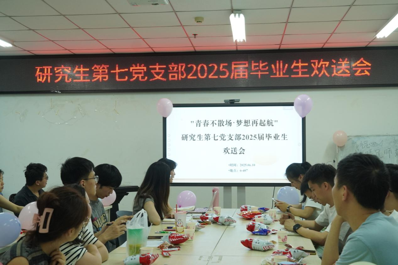 6月10日下午,新葡的京官网研究生第七党支部以“青春不散场・梦想再起航”为主题,举办2025届毕业生党员欢送仪式。支部全体党员齐聚一堂,分管老师舒正悦老师列席,仪式在党支部书记李童的主持下顺利进行,共同度过了一场温馨而热烈的青春送别会。