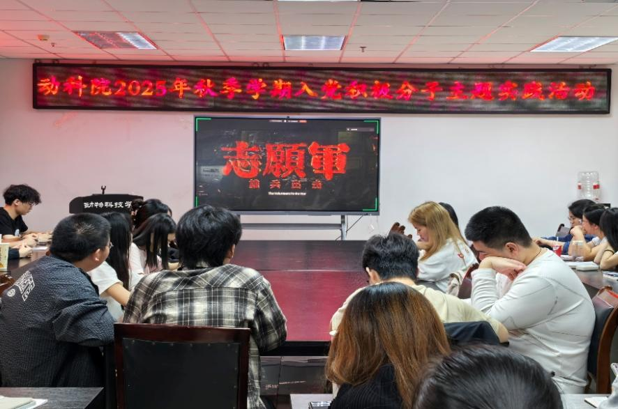 10月12日,学院2025年秋季学期入党积极分子培训班主题实践活动——“光影鉴史,矢志前行”红色影视鉴赏及感悟分享活动于7-1011顺利召开。46名入党积极分子全程参与。