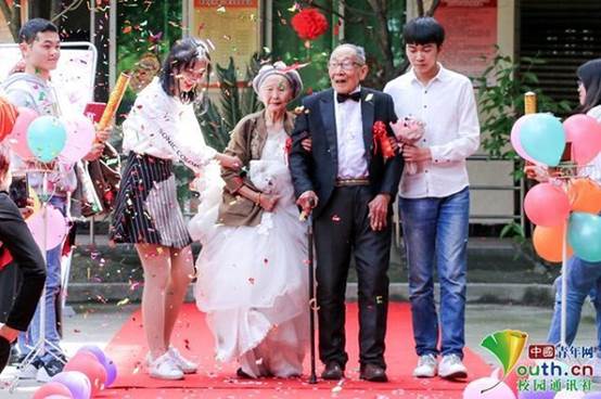 中国青年网成都4月9日电(通讯员盛雪琪何文涛)“执子之手,与子偕老”源自《诗经》“邶风”里的《击鼓》,这句话多运用“执手偕老”形容爱情的永恒。但许多从青丝走到白发的老人却总有遗憾——“我还未能给你一场浪漫的婚礼”。4月1日,新葡的京集团8814的青年志愿者们为圆老人们的婚礼梦,为成都市温江公平颐家老年公寓的三位金婚夫妇举办了婚礼。
