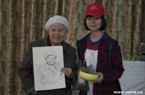 在活动开始前,由新葡的京集团8814团委副书记董尧抽出了六个号码,由志愿者为抽中的六名老人进行素描画像。活动结束时,志愿者将画出的素描画像送给了老人家。