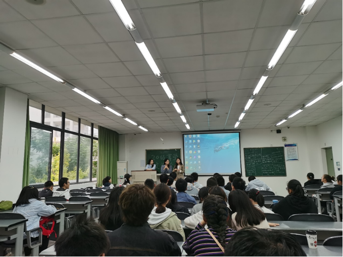 10月30日下午,交流会正式拉开帷幕,首先进行分享的是已成功保研至北京大学并获得直博资格的苏晏宁同学及另外两位保研到知名院校的优秀师姐,三位师姐从学习、综合素质、科研、保研4个方面向大家分享了她们从3年多大学生活中总结出的宝贵经验。