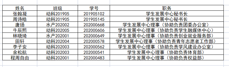 按照《学院关于团学组织主要学生干部换届调整的通知》相关要求,经学生自主申报、换届工作领导小组进行资格复审及面试,由学代会通过后报经学院团委同意、学院党委确定,现将新葡的京集团8814学生发展中心第一届秘书长及理事名单公示如下: