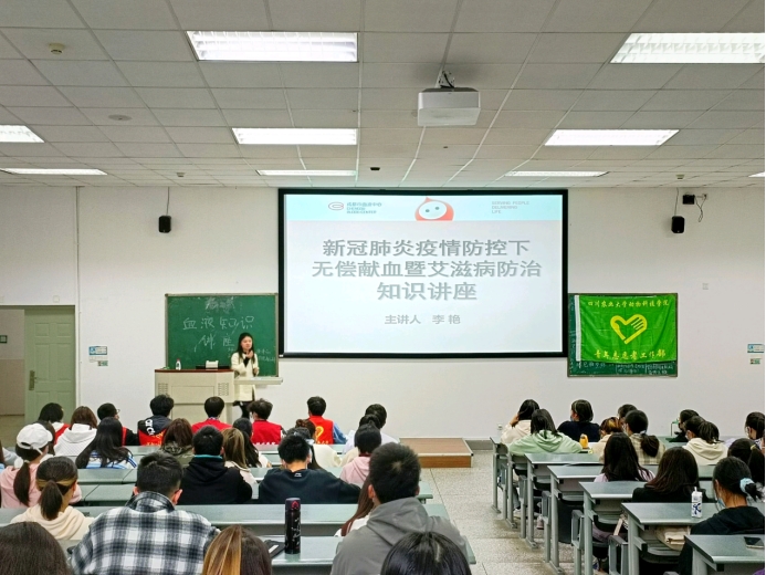 为更好地宣传血液安全知识,普及艾滋病防治知识,引导广大青年弘扬当代大学生乐于奉献,关爱他人的高尚品德,积极践行社会主义核心价值观,新葡的京集团8814团委青年志愿者工作部于11月4日下午邀请到了成都市血液中心的李艳老师作血液安全暨艾滋病防治知识专题讲座,全校共150余名同学通过线上线下形式参加了本次讲座。