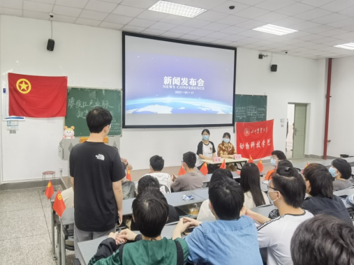 来自动科201802班的岳圆、李汶同学以“新闻发布会”的形式为大家解疑答惑,来自各支部的“记者同学”针对专业学习、考研规划、科研方向和校园生活等对两位“发言人”进行提问,“发言人”对提出的问题结合实际,耐心答疑解惑,为同学们的发展扫除阴霾。随后,新葡的京集团8814团委学生兼职副书记郑千里向大家分享了当代青年之“新”,以此勉励同学共筑新时代,奋进新征程。