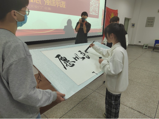 学生书画协会现场挥毫泼墨,以入木三分的笔法写下同时主持人倡议现场同学通过线上渠道,将誓言和祝福送到天安门。学院合唱团为大家带来《以爱之名》大合唱,嘹亮的歌喉和动听的旋律祝福祖国繁荣昌盛。