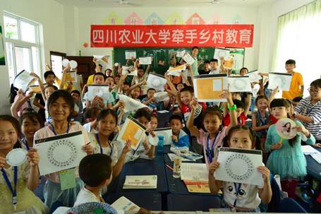 郑淋升同学带领“青芒”支教队进入大山深处,在绵阳市豆叩小学开设暑期夏令营,由于地理条件的问题,当地教育条件落后。根据实际情况,支教队选择开展的课程偏向于素质拓展。为了让小朋友更好地了解这个世界,在音乐、绘画、手工等各个方面开展课程和活动,培养小孩子全面发展。同时传递共享自然保护自然的知识,帮助小朋友树立环保意识。
