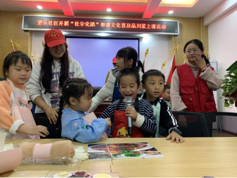 “等会儿我就可以自己做川菜啦!”孩子们对家乡美食文化充满了浓厚的兴趣,但提及到郫都的特色美食、郫都豆瓣酱的历史以及制作流程时,孩子们却一脸茫然。社区负责人胡玉表示,大部分青少年还没有形成主动去了解自己家乡特色文化的意识,对自己的家乡、民族的文化归属感、认同感、荣誉感还有待增强。“志愿者给孩子们普及传统文化和特色文化是非常有必要的,这不仅对孩子们加强自我的归属感有积极作用,更对传统文化的传承、创新有重大的意义。”胡玉这样说道。