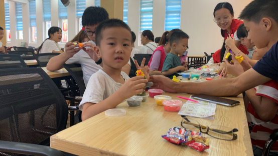 图为志愿者带领小朋友一起捏制黏土人物。中国青年网通讯员 刘伊琳 供图