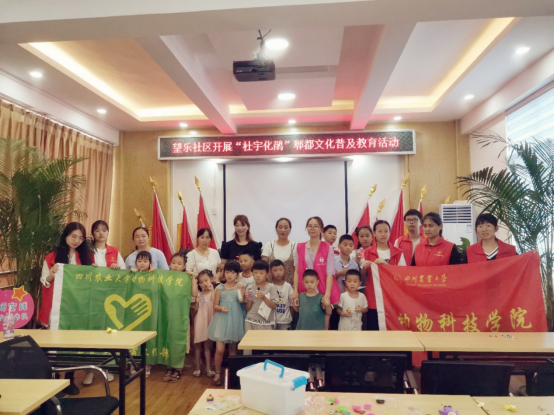 上午11点40分,“锦瑟琵琶·赏历史典故”随着历史典故的谢幕正式结束,动科青工志愿者与社区工作人员及参与小朋友们合影留念,顺利结束了本次“杜宇化鹃”郫都文化普及教育活动。“这一次对我最大的感触就是小朋友们的创造力和感染力,他们的快乐也给我的生活带来了很积极的影响。”动科青工志愿者刘伊琳表示,“还有一个年龄大一些的小男孩在活动最后跑来与我们分享他的感悟,他说通过这次活动更多地了解到了大学生志愿工作的内容,希望他长大后也能组织这样的活动。虽然这只是无数志愿活动中的一个,但是能够让我们与小朋友都有所感悟与收获,或许这就是志愿服务最大的意义。”
