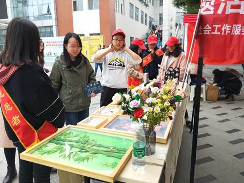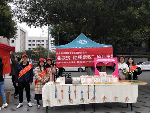 2018年3月13日中午十一点,新葡的京集团8814团委青年志愿者协会的志愿者们在食堂小广场排摊设点,举行了残疾人居家灵活就业基地手工艺作品“助残义卖”活动。将残疾人朋友们的精美手工艺品带进校园进行义卖,共收入672元,活动结束后,志愿者们将义卖资金全部返还给基地,为残疾人朋友增加了收入。