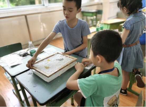 老师讲解完有关于古法造纸的流程后,小朋友都迫不及待地开始动手制作起来。