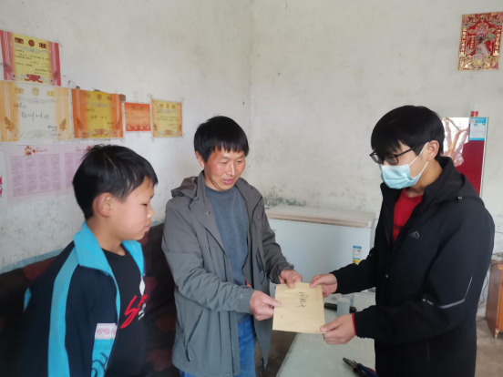 3月7日下午,川农动科青工的志愿者们带上学习用品和生活用品等物资前往被资助的贫困学生家中慰问。据了解,志愿者们一到门口,资助学生之一小沙及其家长就热情地邀请志愿者们进屋就坐,墙上挂满了学生获得的奖状。“人穷志不穷,知识改变命运。”小沙写下的这句话令人印象深刻,纵使山高坡陡也阻挡不了他们对学习的渴望,绝不能让贫困成为他们跟上社会发展脚步的绊脚石。当志愿者将善款交到小沙爷爷手中时,爷爷对志愿者连连摆手说不要,了解到这是爱心人士捐助的善款并且会一直捐助到小沙初中毕业后,爷爷才收下,并在志愿者离开时连连鞠躬表示感谢,家里的每个人都感动得红了眼眶。