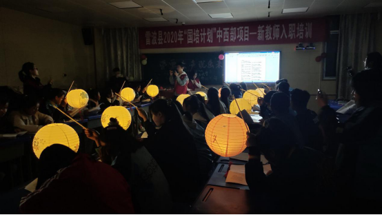 活动最后一天晚上,志愿者们教小朋友们做了纸灯笼,志愿者肖茜教孩子们学唱《明天会更好》、《仰望星空》等励志歌曲,在志愿者吴霜的钢琴伴奏声下,孩子们进行了大合唱。灯笼的光照映在孩子们朝气蓬勃的脸上,孩子们的歌声稍显稚嫩却整齐而又坚定,场面温暖而感人。