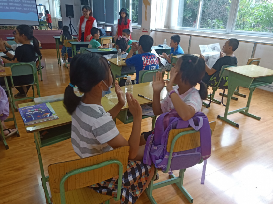 小朋友与志愿者们一起玩防疫小游戏