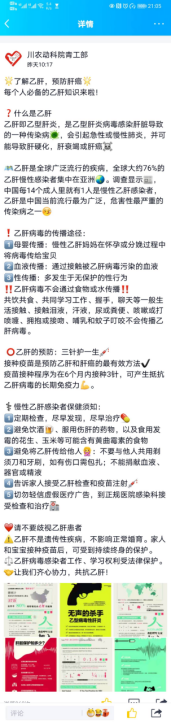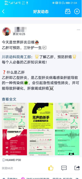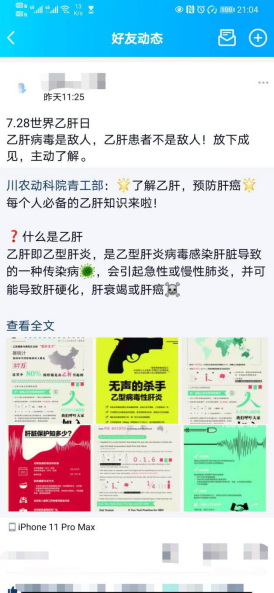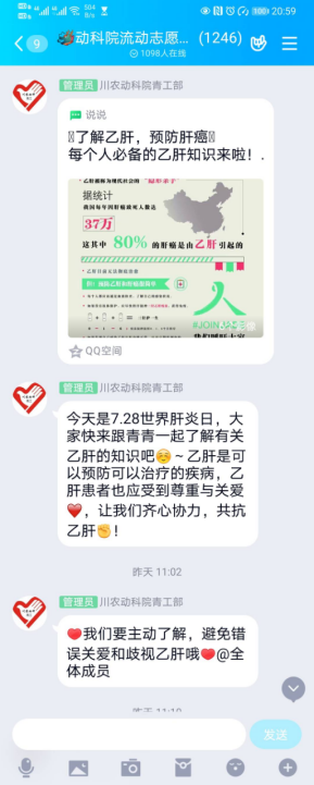 图为官方QQ账号宣传文案截图 图为川农大动科青工向大学生们科普乙肝知识