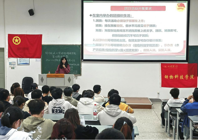 首先,由学院团委组织部负责人陈茜同学讲解《团干意识与职责》,并对三会两制一课制度、支部手册的填写规范以及智慧团建系统维护与团旗、团宝的正确使用进行了系统的讲述,同时还对团费收缴与团日活动的相关事宜进行阐释,进一步明确了团支部、团干的工作职责和业务范畴。