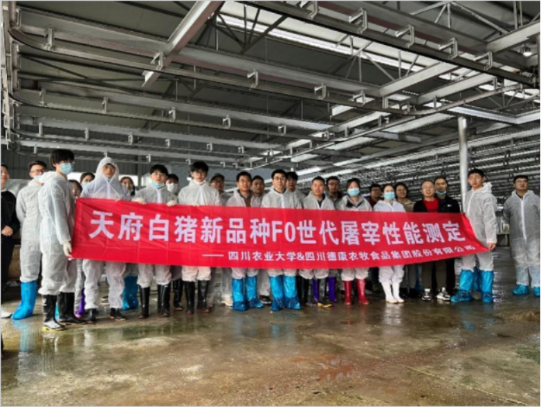 同学们在朱砺教授的带领下与四川德康农牧食品集团股份有限公司负责人首先就天府白猪培育过程中存在的问题以及未来规划进行了深入交流,随后在内江市资中县对18头天府白猪基础群体的胴体性能和肉质性状进行了系统评价,测定了屠宰率、瘦肉率、肉色、肌内脂肪含量等60余项经济性状指标。