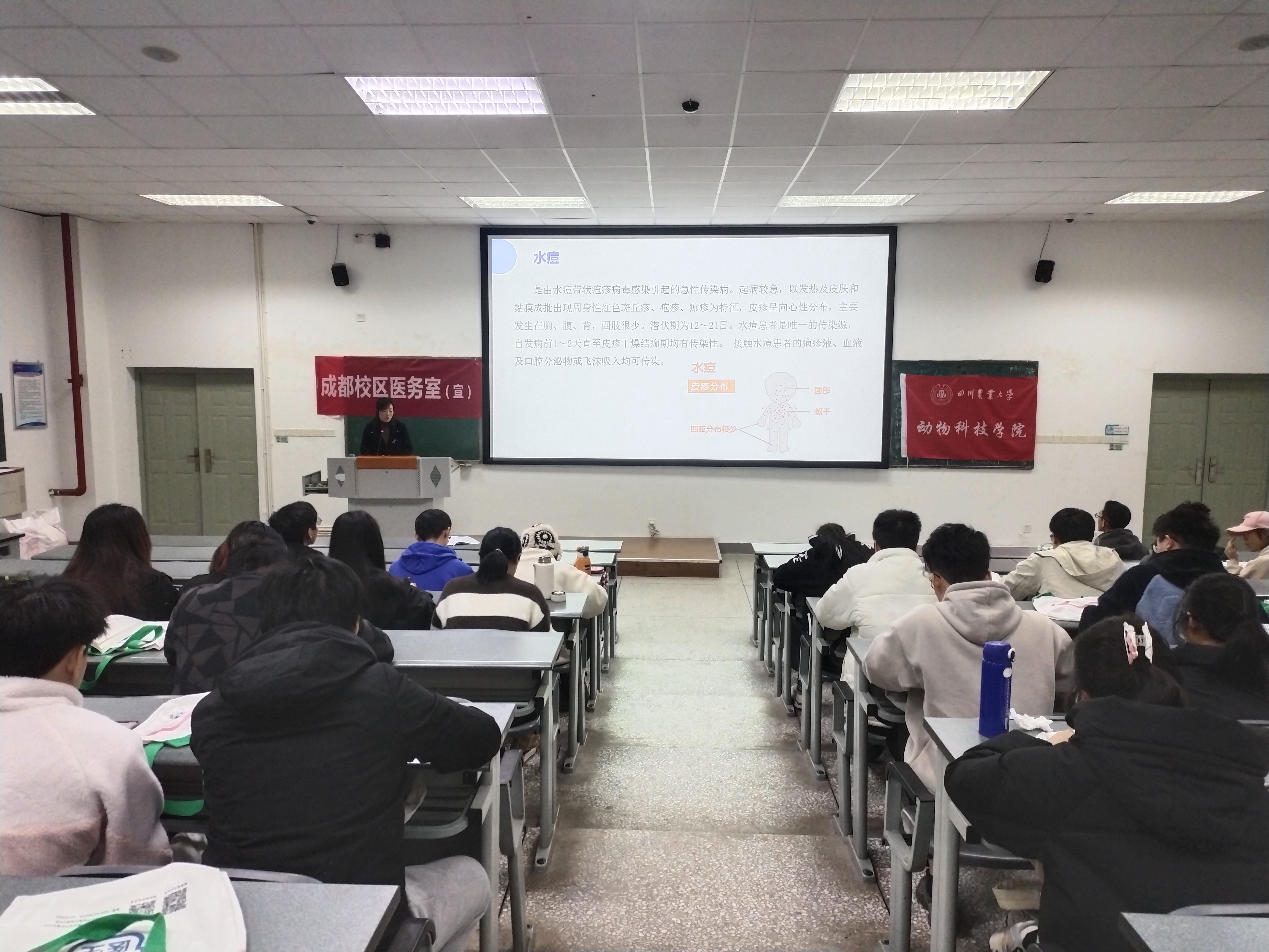 活动期间,动科学院团委青年志愿者工作部和校二医院还于12月1日开展了“凝聚社会力量,合力共抗艾滋”为主题的防艾专题讲座,共吸引了100余名学生参与。讲座上,同学们进一步了解到预防艾滋病的知识,为预防艾滋病打下了坚实的基础。主讲人郑秋老师通过真实案例的展示,深入浅出地讲解了艾滋病的传播途径、感染机制、症状表现以及常见的治疗方法,还重点介绍了如何做好艾滋病的预防工作以及其他各类传染疾病,帮助同学们更加全面的了解和防治应对传染性疾病。