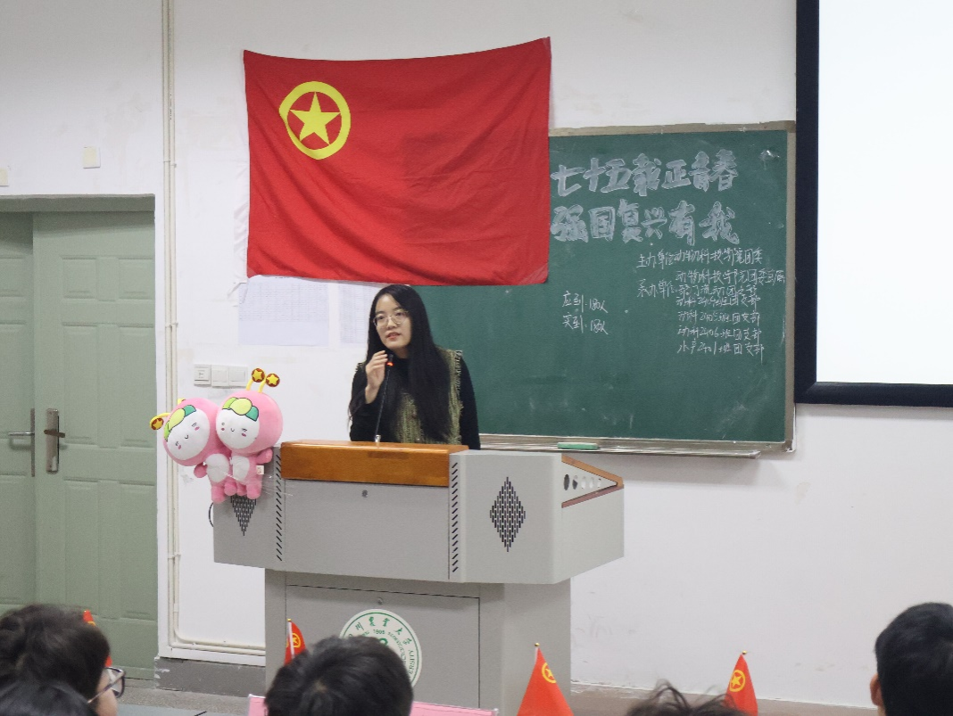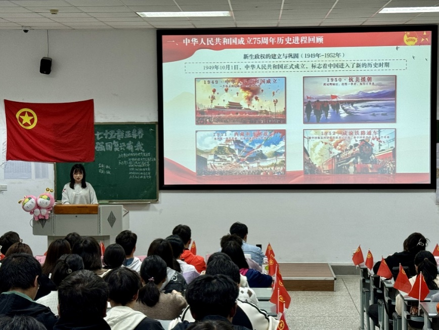 为深入学习贯彻习近平总书记在庆祝中华人民共和国成立75周年招待会上的重要讲话精神,激励广大团员和青年肩负起为中国式现代化挺膺担当的青春责任。新葡的京集团8814团委直属部门流动团支部、动物科学202401团支部、动物科学202404团支部、动物科学202405团支部、动物科学202406团支部及水产养殖学202401团支部于10月29日在4A-203教室联合举办了“七十五载正青春,强国复兴有我”十月示范性班团活动。本次示范性班团活动分为四个篇章展开,共180余名同学参与。