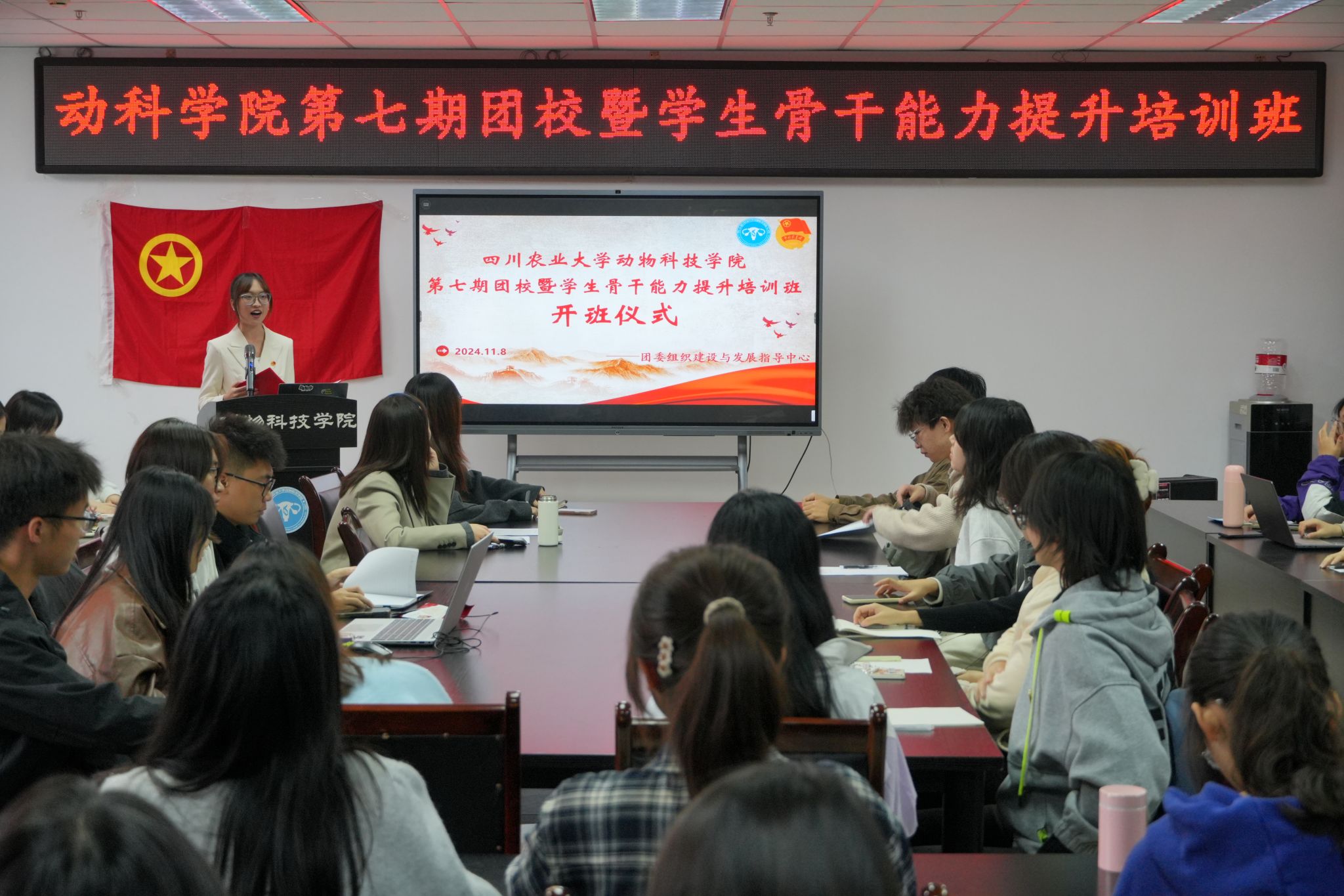 为深入学习习近平总书记关于青年工作的重要思想,不断加强学院党团学组织建设和学生骨干思想政治引领,提升学生干部综合素质能力,学院团委于11月8日中午在七教1011会议室举行了第七期团校暨学生骨干能力提升培训班开班仪式和第一讲,共计七十余名党团学组织骨干参与此次培训。