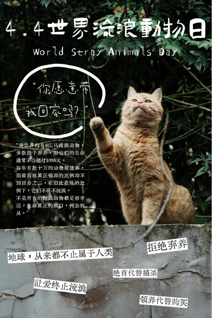 “对动物的仁慈,是人类最好的装饰品。”而当画笔邂逅生灵,色彩便有了温度,当创意融入关爱,海报便成了传递温暖的桥梁。4月1日至4月8日,“流浪守护生灵”主题海报设计活动在校园内同步展开。