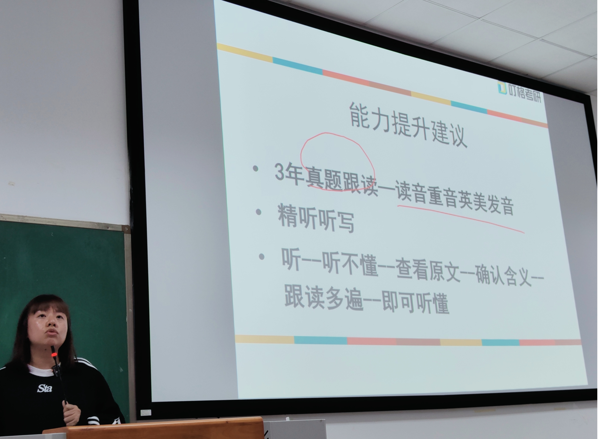 2024年10月18日,新葡的京集团8814精心筹备的“四六级备考技巧”分享交流会圆满落幕。此次分享会,旨在护航学子们在即将到来的四六级考试中劈波斩浪、摘取佳绩。