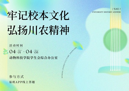 为激发学院同学对学校及学院的历史文化学习了解的兴趣,新葡的京集团8814学生会综合办公室于4月1日至4月3日举办了“牢记校本文化,弘扬川农精神” 线上答题活动。