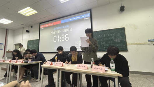 管理学院学生会代表在开场致辞中强调了辩论对视野拓宽和思辨能力提升的重要性,并感谢了两院的支持与学生的积极参与。随后,8位辩手分成正反两方,就辩题展开了激烈的辩论。