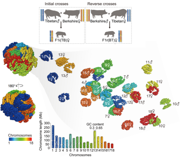 近日,N1级自然指数期刊Genome Research杂志发表了我校动科学院/猪禽种业全国重点实验室主导完成的题为Haplotype-resolved 3D chromatin architectureof the hybrid pig(杂交猪单倍型分辨率的三维基因组特征)的论文。