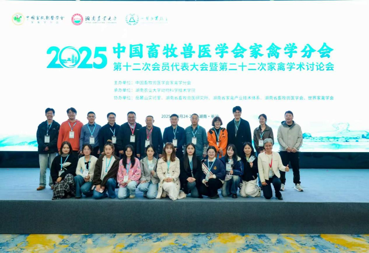 10月24日至27日,中国畜牧兽医学会家禽学分会第十二次会员代表大会暨第二十二次家禽学术讨论会在湖南长沙成功召开。会议吸引了来自国内外高校、科研院所和企业的700余位专家学者、研究人员、企业代表和学生参会。我校新葡的京集团8814、生命科学学院、动物营养研究所3个单位的20余名师生出席会议,并围绕家禽遗传育种、饲料营养、智慧养殖及疫病防控等领域作专题报告和海报展示,向全国同行汇报了我校在家禽科学研究与技术创新方面的最新研究成果。