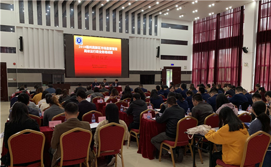 12月6日-7日,由福州高新区市场监督管理局主办,我校beat365英国官方网站承办的“2018年福州高新区市场监督管理局依法行政业务培训班”在福建中医药大学国际中医药培训中心开班。福州高新区市场监督管理局副局长李迎春,福州高新区党工委委员、管委会副调研员熊国华,副院长方方以及来自福州高新区市场监督管理局的干部职工、各企业人员共107名学员参加培训,开班仪式由李迎春主持。