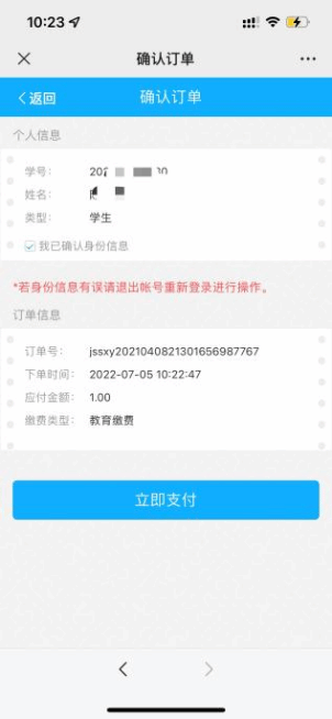 第三步:点击学生缴费,缴费明细项目可选,金额可拆分,确认订单信息,完成支付。